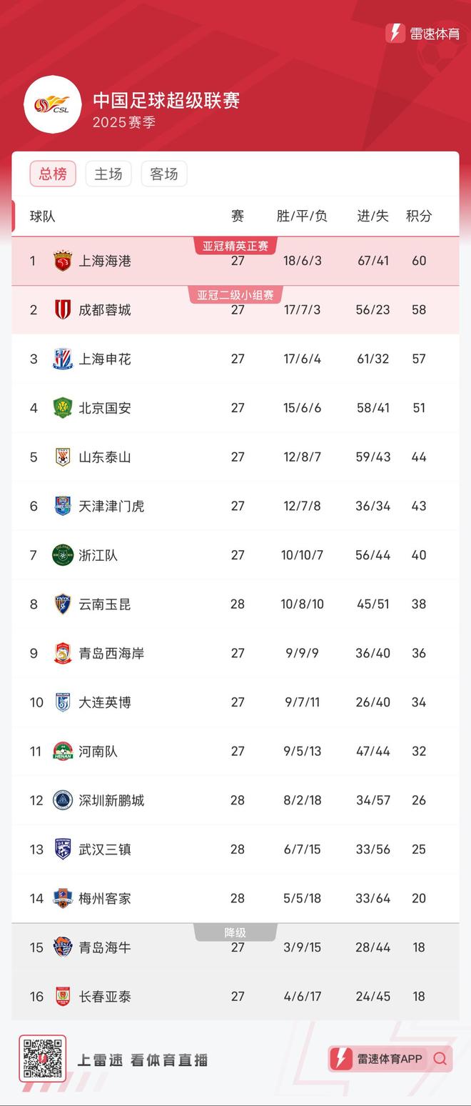 雷速體育10月24日訊 在剛剛結(jié)束的兩場(chǎng)關(guān)乎保級(jí)的中超比賽中,深圳新鵬城2-1擊敗保級(jí)對(duì)手三鎮(zhèn),反超對(duì)手位列第12位。