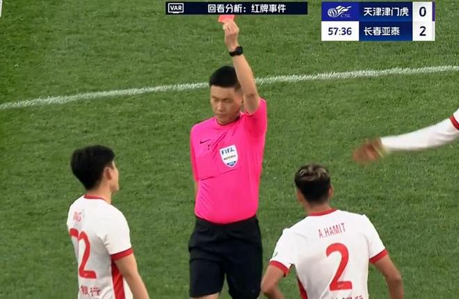 易地再戰(zhàn),第58分鐘,王禹飛鏟鏟到了哈達(dá)斯腳踝,主裁判先是出示黃牌,VAR介入,改為紅牌。長(zhǎng)春亞泰少打一人!