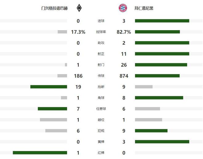 多一人作戰(zhàn)的拜仁,隨后在門興大禁區(qū)附近開始了破密集防守的演練,第30分鐘迪亞斯禁區(qū)內頭球擺渡,中路跟進的杰克遜沒有準備好,浪費了迪亞斯的妙傳,半場比賽結束之前,殺到前場的比朔夫完成了一腳遠射,但被主隊的門將神勇?lián)涑隽说拙€,兩支球隊也帶著0-0的比分,結束了上半場的爭奪。