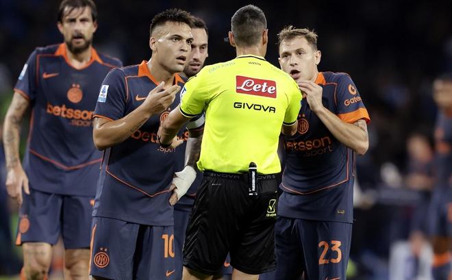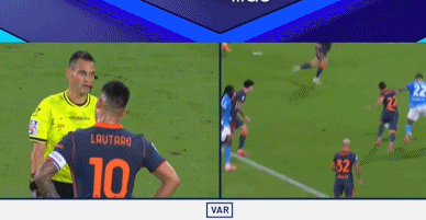 然而第33分鐘,場上卻出現(xiàn)爭議一幕;迪洛倫佐禁區(qū)內(nèi)前插接應(yīng),姆希塔良及時(shí)卡住身位,阿切爾比滑鏟干擾成功碰到皮球,迪洛倫佐應(yīng)聲倒地,主裁判卻判給了那不勒斯點(diǎn)球??v使國米眾將提出抗議,主裁判馬里亞尼還是堅(jiān)持原判,隨后德布勞內(nèi)操刀主罰命中,0:1!不過德布勞內(nèi)在主罰過后拉傷了右大腿,無法堅(jiān)持比賽被隊(duì)醫(yī)直接攙扶出場。