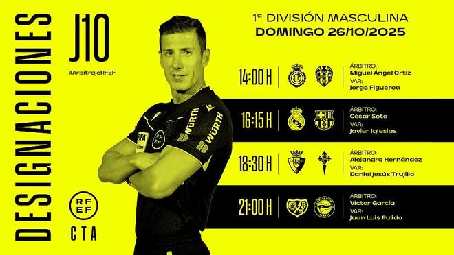 北京時間10月25日,西班牙足協(xié)公布了周日的4場西甲裁判人選,索托-格拉多將執(zhí)法西班牙國家德比。