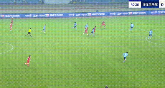 第55分鐘,王鈺棟突入禁區(qū)傳中,卡列洛凌空將球踢進(jìn)大門,浙江隊(duì)扳平比分。