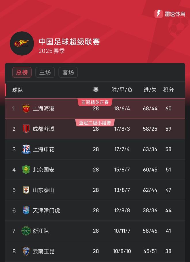 中超爭(zhēng)冠形勢(shì):還剩2輪海港蓉城申花僅差2分,國(guó)安徹底掉隊(duì)